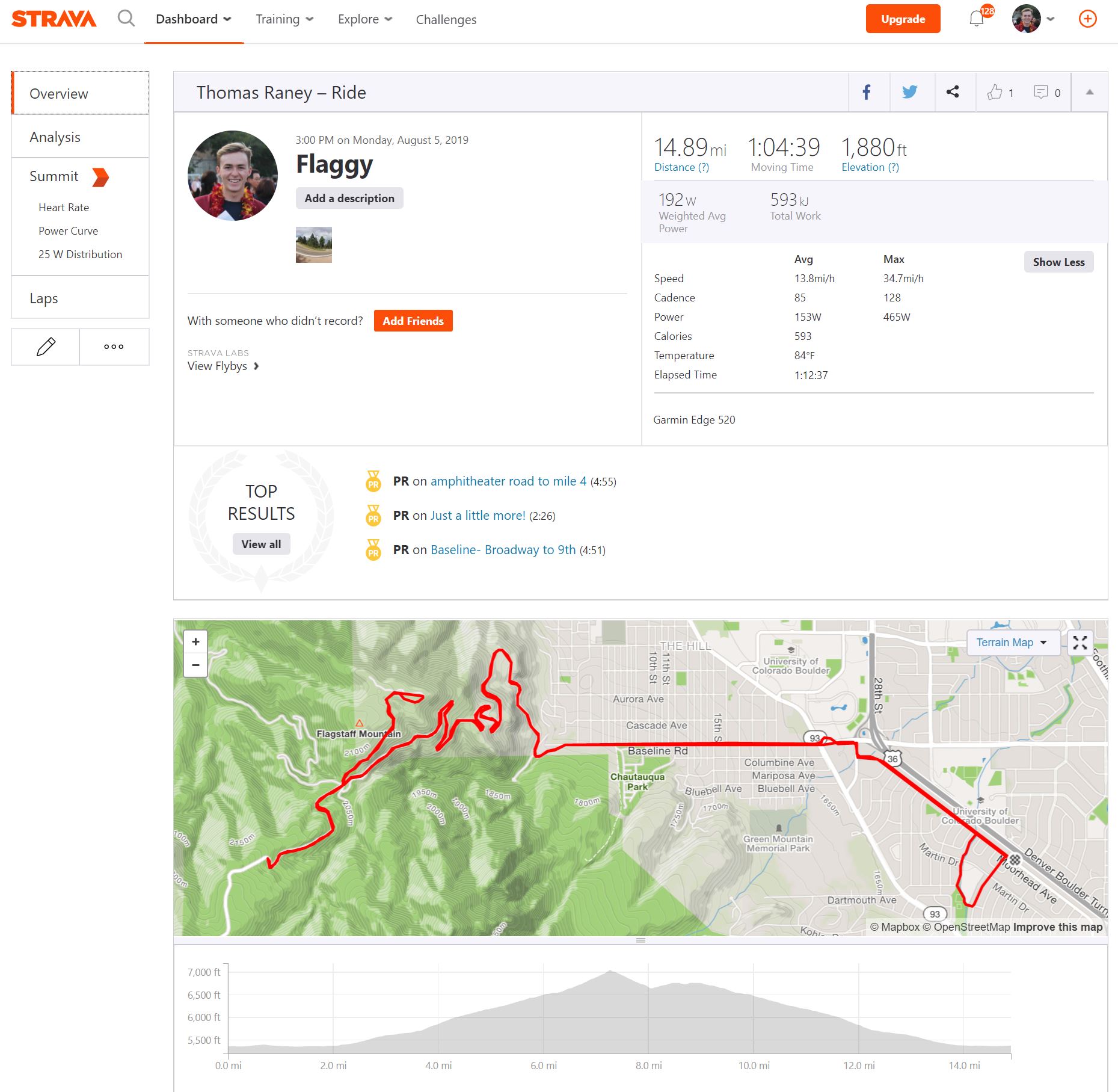 I started with a little loop around my neighborhood to get some flat in before the climbing. It is good to get that little warm up in because there are no downhills at all up Flagstaff. Living in Boulder is amazing for cycling but when climbing it can be a lot all at the beginning of the ride.